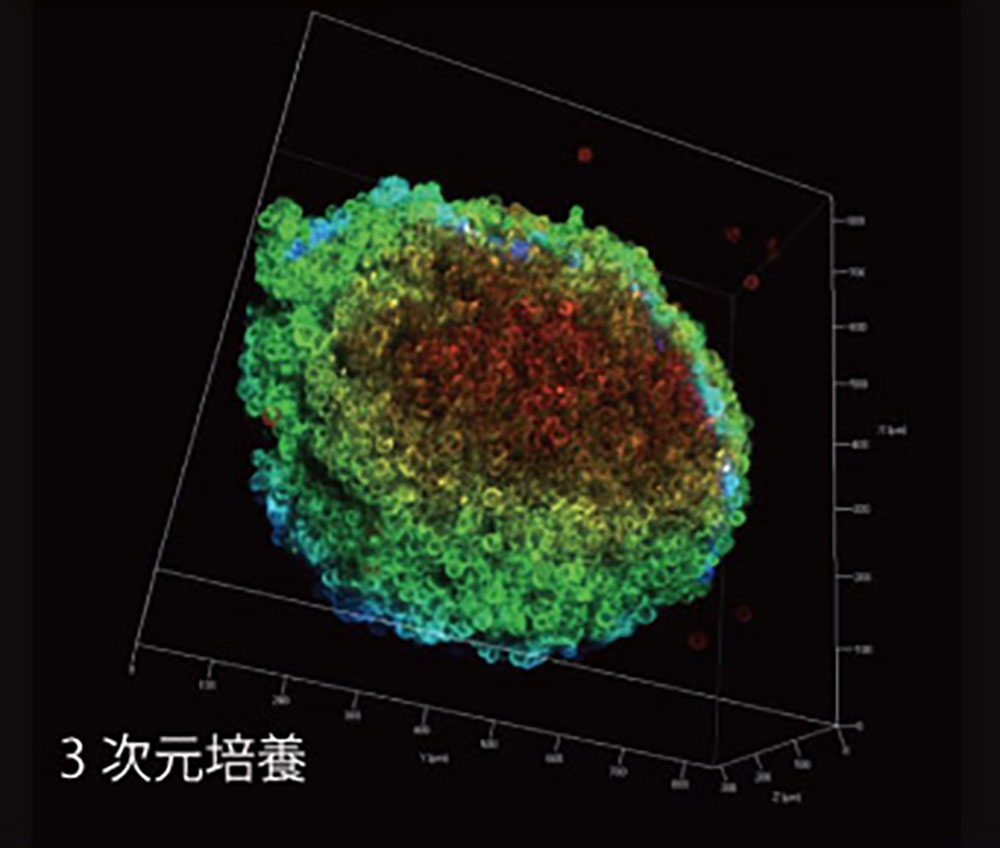 三维培养中细胞呈立体接触,细胞间的刺激传导是立体的。内部细胞不直接接触培养基或药物,通过扩散供应。