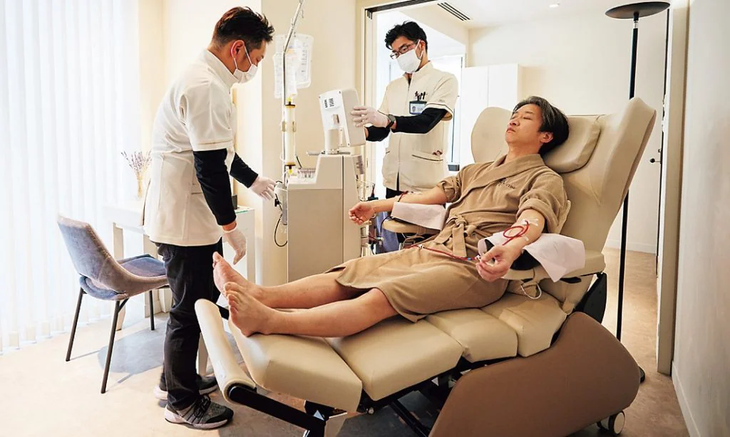 本院的血液净化疗法(双重过滤血浆净化疗法)是一种高度专业的治疗方式,将体外血液自动分离为血细胞与血浆,对血浆进行过滤后再与血细胞混合并回输体内。通过清除终末糖化产物、诱发炎症的蛋白质及低密度胆固醇等老化相关有害因子,缓解导致衰老的全身性慢性炎症。