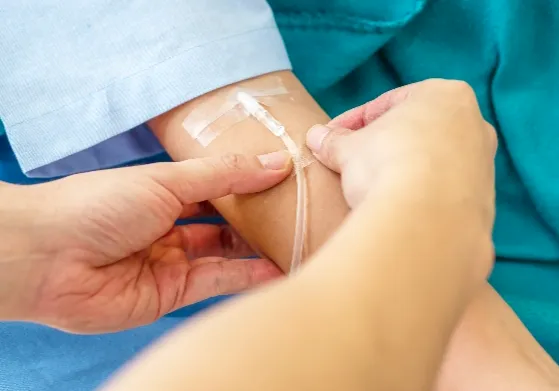 通过点滴给药进行细胞回输。